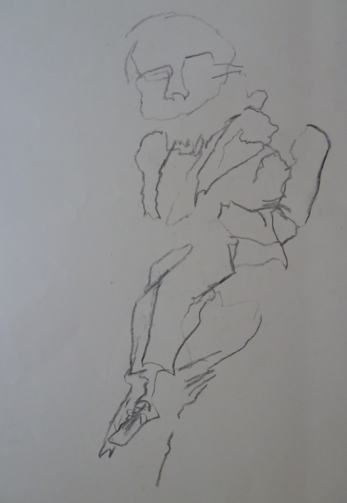 I think I need to continue to think about spontaneity in my work, which has been helped by the earlier exercises. As I feel more confident about achieving this I will concentrate more on composition and the important elements that help to make a painting work, as written by Bernard Dunstan in his book entitled Composition. Some of these elements may not be relevant to modern ways of composing pictures, particularly abstract ideas, but others may well be relevant. I have used one of the suggestions, spilling warm colours into cool colours of similar tones, for example in the floor on the right of the full length painting.